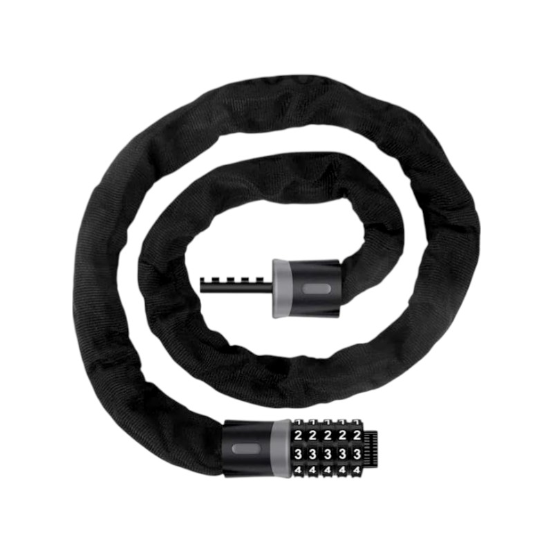 Αλυσίδα κλειδώματος ποδηλάτου με κωδικό ασφαλείας 5 ψηφίων, ατσάλινη, με υφασμάτινη προστατευτική επένδυση για να μην χαράζει την ζάντα.