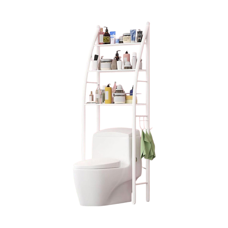 Επιδαπέδια ραφιέρα μπάνιου μεταλλική, συναρμολογούμενη, με 3 πρακτικά ράφια και πλαϊνές κρεμάστρες, ιδανική για οργάνωση και εξοικονόμηση χώρου καθώς τοποθετείται επάνω από τη λεκάνη τουαλέτας. Διαστάσεις: 47 × 25 x 168 cm.