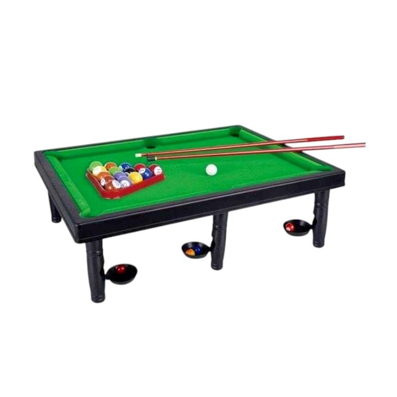 Επιτραπέζιο μπιλιάρδο cmini, πλαστικό, με τσόχα, σε υπέροχο ρεαλιστικό σχεδιασμό, με 2 στέκες και πλήρες σετ αξεσουάρ, για τους μικρούς λάτρεις του αθλήματος.