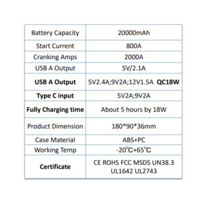 • Χωρητικότητα Μπαταρίας: 20000mAh