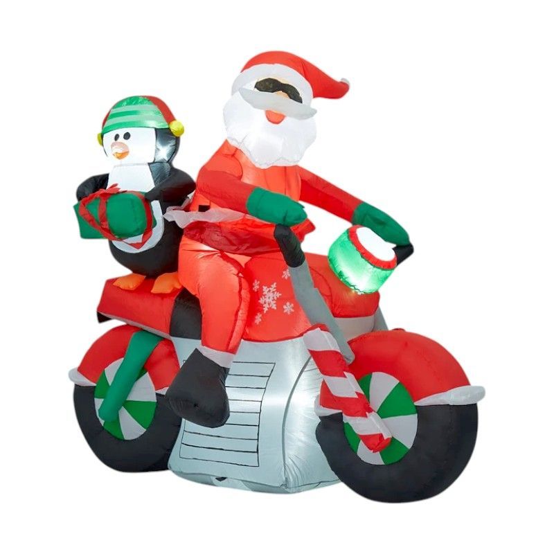 Φουσκωτός διακοσμητικός Άγιος Βασίλης με μοτοσυκλέτα και εσωτερικό φωτισμό LED.