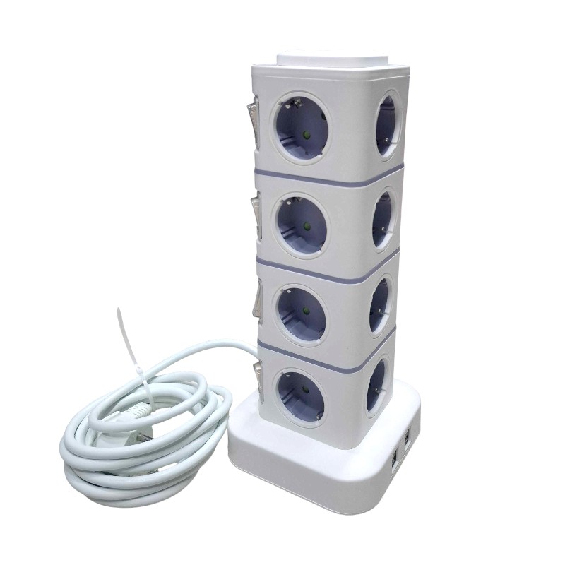 Κάθετο πολύπριζο 16 θέσεων με διακόπτες, με 4 θύρες USB και πρίζα Σούκο – RC-G16P.Μήκος καλωδίου: 3m