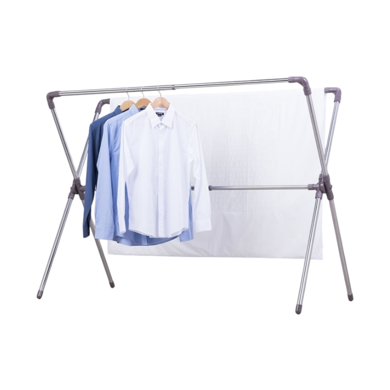 Πτυσσόμενη κρεμάστρα δαπέδου διπλή και απλώστρα ρούχων πολλαπλών χρήσεων.