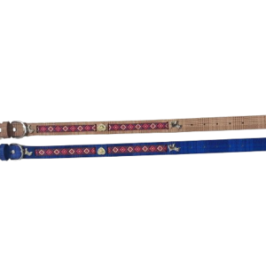 Περιλαίμιο-Κολάρο σκύλου με σχέδια και κούμπωμα ζώνης. Διαθέτει ρυθμιζόμενο μήκος έως 46cm και πλάτος 2cm. Διαθέτει επίσης κρικάκι ώστε να κρεμάσετε την ταυτότητα του κατοικιδίου σας ή αξεσουάρ. Διαθέσιμο σε διάφορα χρώματα – Σημειώστε το χρώμα προτίμησής σας στις σημειώσεις παραγγελίας – Αποστολή κατόπιν διαθεσιμότητας.