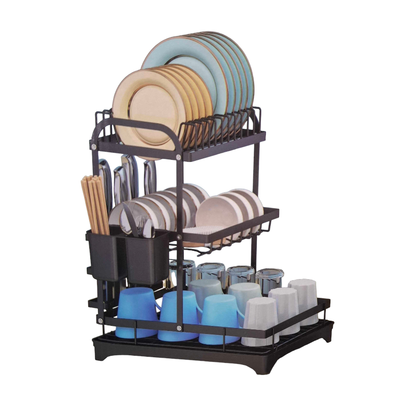 Πιατοθήκη αποστράγγισης μεταλλική, τριώροφη με θήκες μαχαιροπίρουνων.