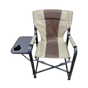 Πτυσσόμενη καρέκλα παραλίας-camping με ενσωματωμένο πτυσσόμενο τραπεζάκι στη δεξιά πλευρά, με ποτηροθήκη.