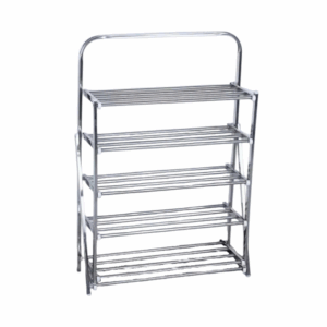 Ραφιέρα παπουτσιών αλουμινίου, πτυσσόμενη, 5 επιπέδων. Διαθέτει αντιολισθητικά πατάκια για την προστασία του πατώματός σας. Ιδανική για έπιπλο εισόδου ή οργάνωση αποθήκης. Διαστάσεις: 87 x 55 x 24cm