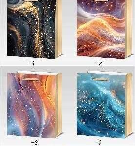 Σακούλες δώρου από ανθεκτικό χαρτόνι με πλαστική επένδυση, σε ποικιλία σχεδίων, με χειρολαβή κορδέλα.