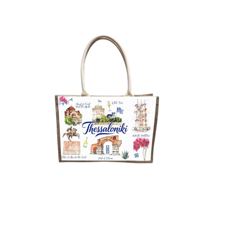 Τουριστική τσάντα λινή με κουμπί – Thessaloniki – 36*25*16cm – 871884