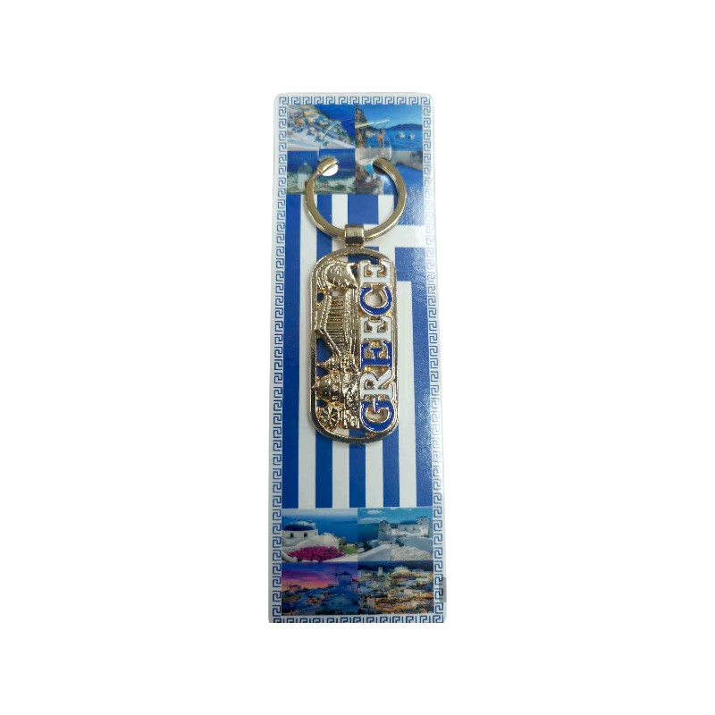 Τουριστικό μπρελόκ Souvenir, κατασκευασμένο από ανοξείδωτο ατσάλι και υψηλής ποιότητας υλικά, με εντυπωσιακά ανάγλυφα σχέδια που αντιπροσωπεύουν την Ελλάδα.    Πακέτο 12 τεμαχίων.   Μήκος: περ. 11cm.