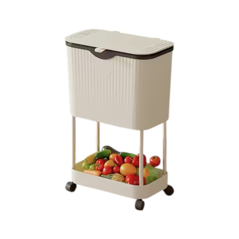 Tροχήλατο καρότσι οργάνωσης κουζίνας 2 επιπέδων με ενσωματωμένο κάδο απορριμμάτων.